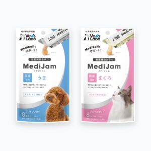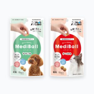 お薬が苦手なワンちゃん・ネコちゃんが お薬を美味しくたべるための 投薬補助おやつ。 HJ1乳酸菌を配合し、腸内環境もサポートします。