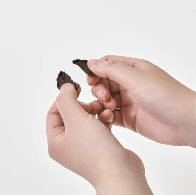 パリパリとした食感が楽しいチップスタイプのジャーキーなので、手で簡単に割ることができ、一口サイズにして少しずつ与えることも可能です。