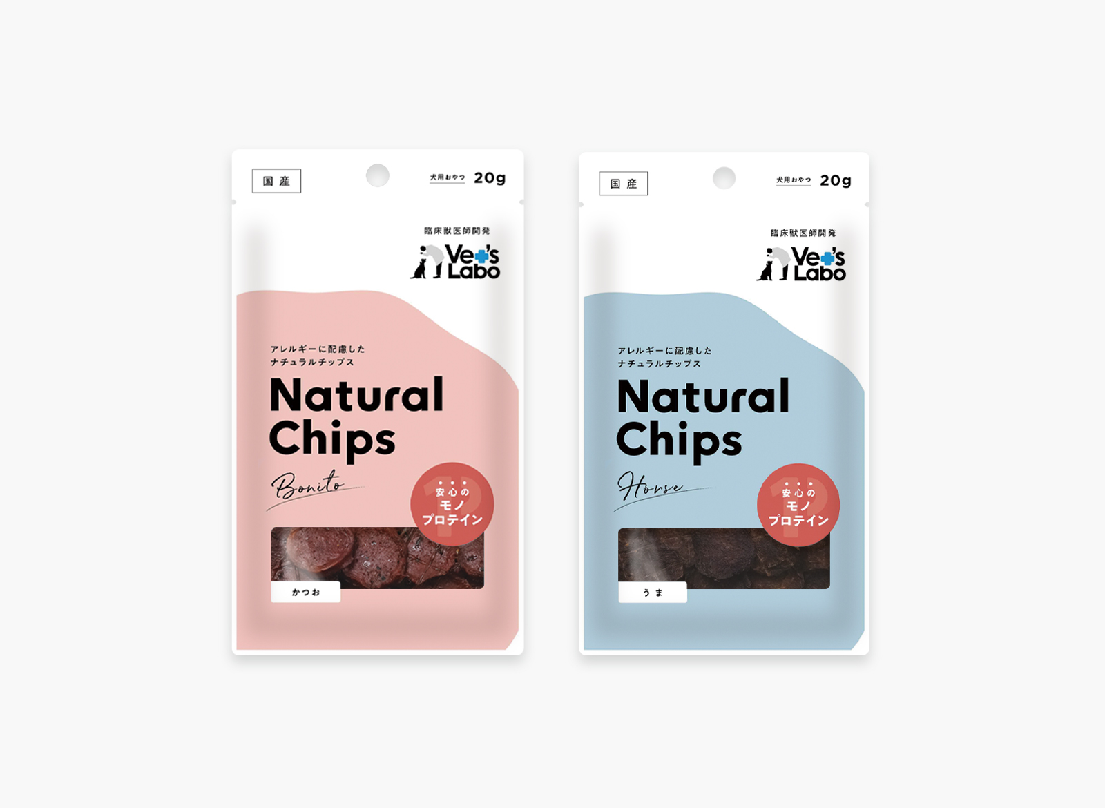 そんな飼い主様の不安要素を払拭し、安心して与えられるおやつをと思い、添加物を一切加えず、素材そのものの香りや味を楽しめる「ナチュラルチップス」を開発しました。