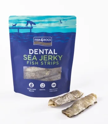 100%天然素材(ホワイトフィッシュの皮のみ)を使用した歯垢除去に効果的な、ナチュラルでヘルシーなデンタルケアトリーツ。