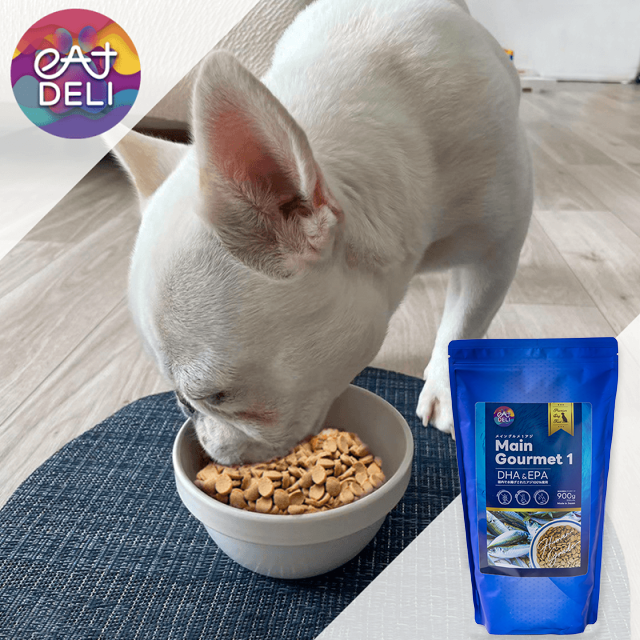 イートデリの、メインディッシュともいえる”メイングルメ1 アジ”には国内産のアジをタンパク源に使用したドッグフードです。